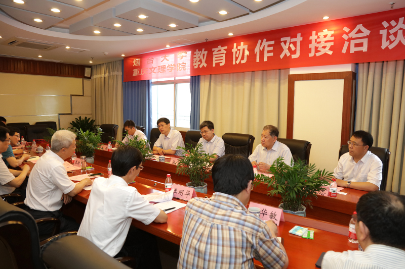 5月18日上午,烟台大学党委书记张伟、副校长宋中民一行5人到校开展教育协作对接洽谈事宜。beat365党委书记孙泽平,副校长漆新贵、王明华,校务部、合作发展部、教工部、教学部、学工部、科技部相关负责人参加了教育协作洽谈。会议由漆新贵主持。