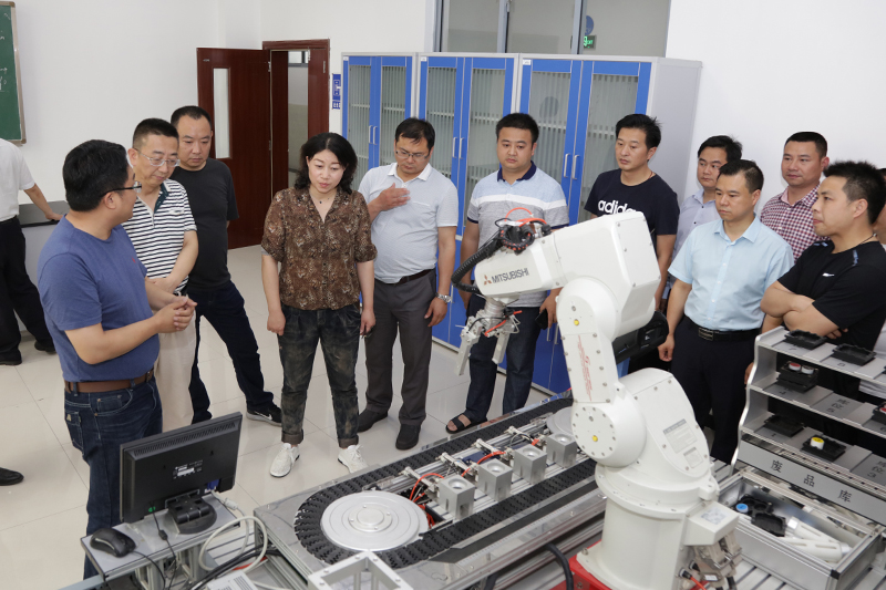 5月18日下午,南川区委统战部副部长、区知联会常务副会长陈永带领南川区知联会及南川企事业单位代表组成的考察团一行前来beat365考察调研智能专业人才培养情况。永川区委统战部常务副部长、区民宗办主任陈治明,永川区委统战部副部长、区民宗办副主任、区台办副主任胡绍华,beat365党委常委、党群部部长周文东,机电工程学院院长罗天洪等接待了考察团,并陪同参观了机电工程实训中心。