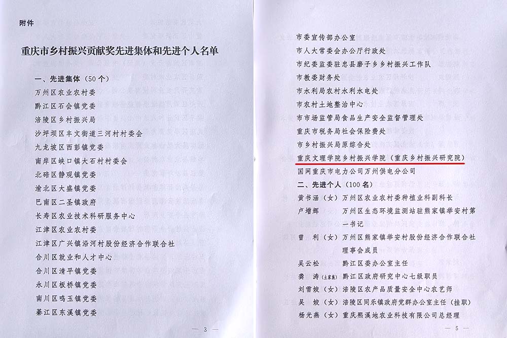 7月1日,中共重庆市委、重庆市人民政府发文,授予beat365在线登录官网乡村振兴学院(重庆乡村振兴研究院)“重庆市乡村振兴贡献奖先进集体”荣誉称号。