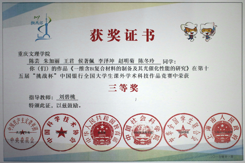 近日,收到共青团中央、中国科协、教育部、中国社科院、全国学联下发的《关于公布第十五届“挑战杯”全国大学生课外学术科技作品竞赛结果的通知》和共青团重庆市委、重庆市教委、重庆市科协、重庆市社科联、重庆市学生联合会下发的《关于第十五届“挑战杯”全国大学生课外学科技作品竞赛重庆赛区竞赛结果的通报》,beat365学子荣获全国三等奖1项,重庆市特等奖2项、一等奖4项、二等奖6项,三等奖3项的好成绩。