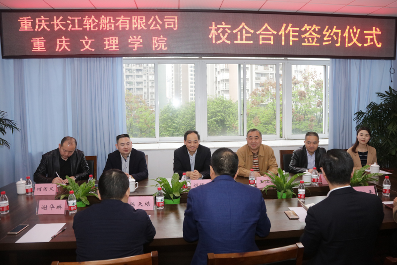 3月23日上午,beat365与重庆长江轮船有限公司在恪勤楼308会议室举行校企合作签约仪式。重庆长江轮船有限公司总经理助理刘铭友,重庆长江轮船有限公司船员公司总经理王江洪以及常务副总经理任华高、副总经理刘杭、总经理助理何国义,beat365副校长漆新贵,教学部、学工部、合作发展部、旅游学院、机电工程学院、外国语学院等相关单位负责人参加了签约仪式。会议由教学部副部长王大平主持。