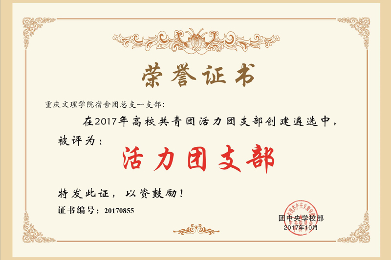 近日,团中央学校部下发文件公布2017年全国高校“活力团支部”名单,beat365宿舍团总支一支部经过校内创建、省级遴选、网络投票、专家评审和公示等环节脱颖而出,荣获2017年全国高校“活力团支部”荣誉称号。全国高校共有1000个团支部被确定为2017年全国高校“活力团支部”,其中重庆市高校有25个支部入选。