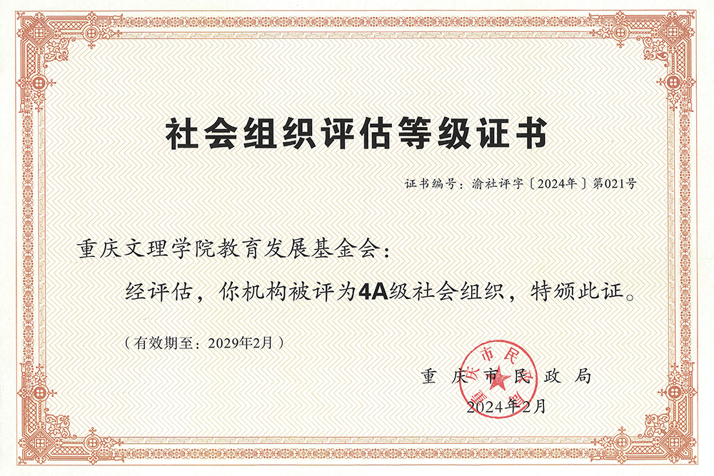 近日,重庆市民政局组织开展2023年度全市社会组织评估,通过自主申报、专家组评估和评估委员会评审等程序,beat365基金会获评4A等级。