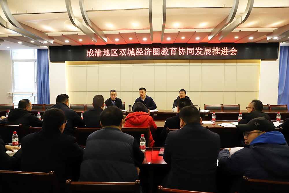 1月4日上午,学校在恪勤楼422会议室召开成渝地区双城经济圈教育协同发展推进会。党委书记蔡家林,副校长金盛,党政办公室、党委组织部、教务处、党委教师工作部(人事处)、科研处、继续教育学院(培训学院)、乡村振兴学院、政产学研研究院及二级学院负责人,发展规划处、创新创业学院相关人员参加会议。会议由金盛主持。