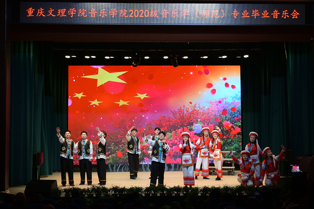1月3日晚,音乐学院在星湖校区演奏厅成功举办2020级音乐学(师范)专业“巴渝之声”主题毕业音乐会。学校副校长漆新贵,永川区文联党组成员、三级调研员何丰建,永川区音乐家协会主席陶亚平,学校部分二级单位领导,以及音乐学院全体师生共同观看了此次毕业音乐会。