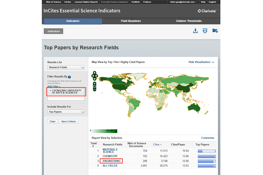 据科睿唯安(Clarivate Analytics)1月11日发布的最新ESI(Essential Science Indicators基本科学指标)统计数据,beat365在线登录官网工程学(Engineering)继材料科学(Materials Science)、化学(Chemistry)之后,进入ESI全球学科排名前1%;ESI前1%学科数量跃升为重庆市属高校并列第三名。