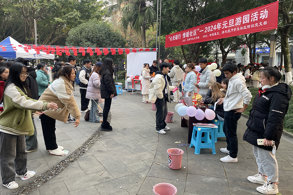 12月27日下午,由党委学生工作部主办、各学生社区特设党支部共同承办的“心光砺行 爱在beat365 情暖社区 ”元旦游园活动分别在清风揽月、清澈蓝天、书香观云、沐歌星湖4个学生社区开展。学校副校长李天福,党委学生工作部、校团委相关负责人,各特设党支部委员,各学生社区苑长、楼长、层长及2000余师生出席并参加了此次活动。
