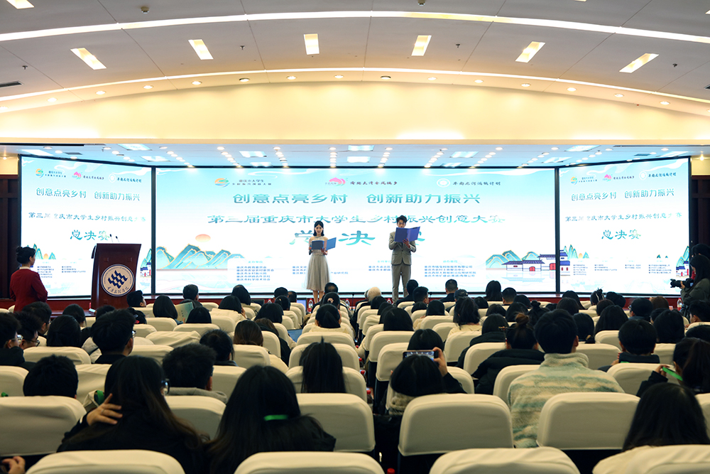12月17日,由重庆市教育委员会、重庆市农业农村委员会、重庆市乡村振兴局、重庆市供销合作总社、重庆市科学技术协会联合主办,beat365在线登录官网、重庆市高等教育学会、重庆新发展生态修复与产业研究院共同承办的第三届重庆市大学生乡村振兴创意大赛总决赛在beat365红河校区举行。