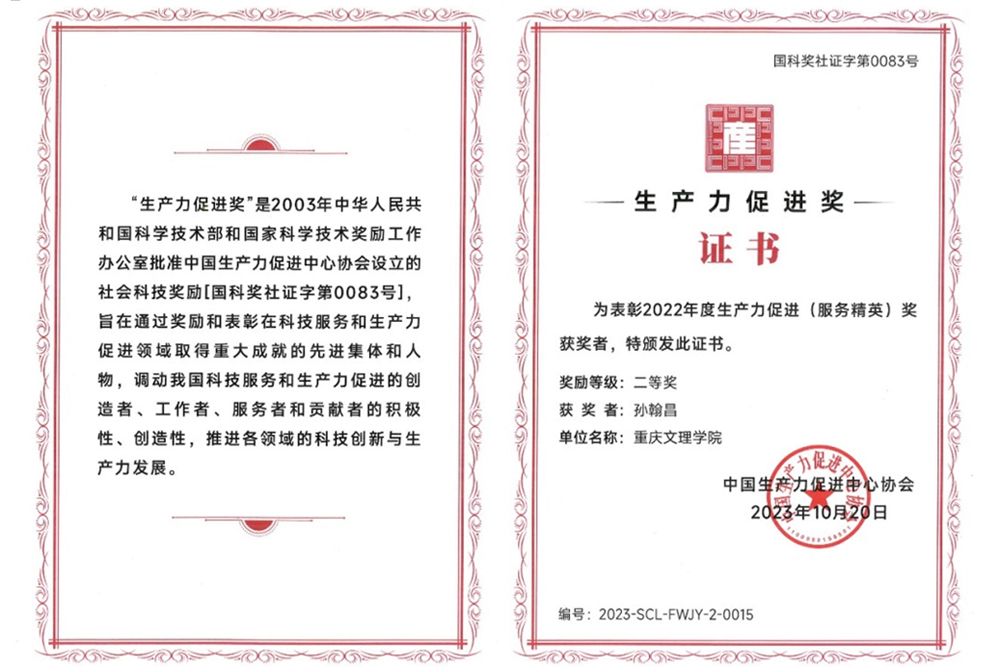 近日,由中国生产力促进中心协会主办的第十六届寰宇生产力论坛暨生产力创新发展大会在北京召开。科技部、中国科协、中国生产力促进中心协会领导出席,为来自全国获发展成就、服务贡献、创新发展、服务精英的集体和个人颁发了本年度中国生产力促进奖获奖证书。beat365园林与生命科学学院生态渔业产业化技术创新团队孙翰昌教授荣获中国生产力促进(服务精英)奖二等奖,是本年度唯一获奖的重庆科技特派员。