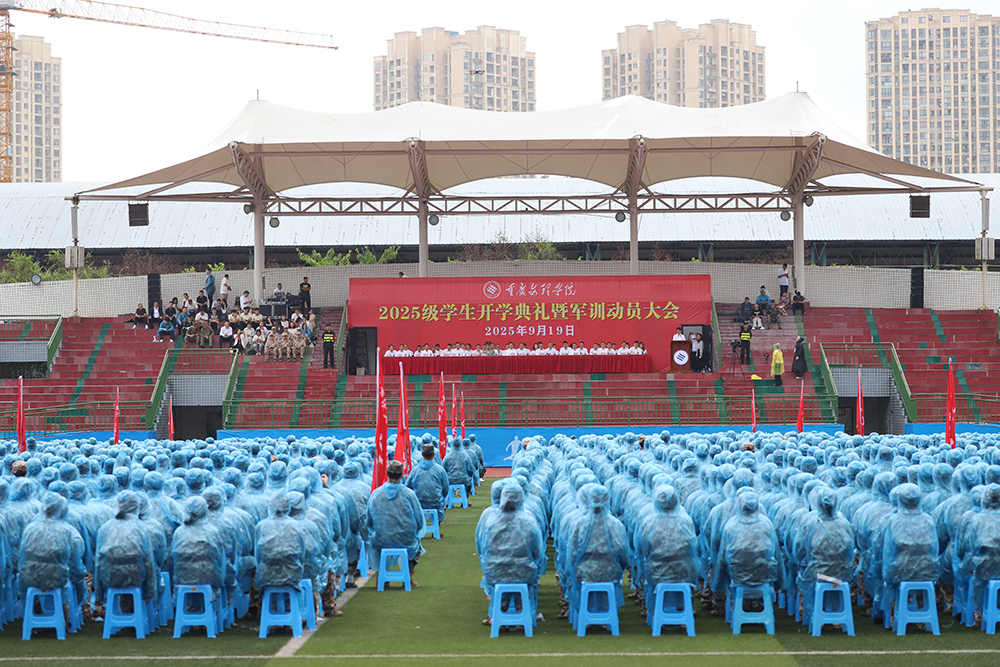 9月19日上午,秋雨淅沥,beat365在线登录官网2025级学生开学典礼暨军训动员大会在红河校区田径场举行。