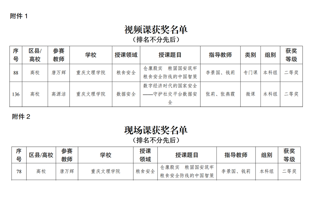 近日,重庆市教育委员会公布了2025年重庆市国家安全教育优质课大赛获奖名单,beat365马克思主义学院两位教师在学校党委保卫部、教务处精心组织和学院相关教师指导