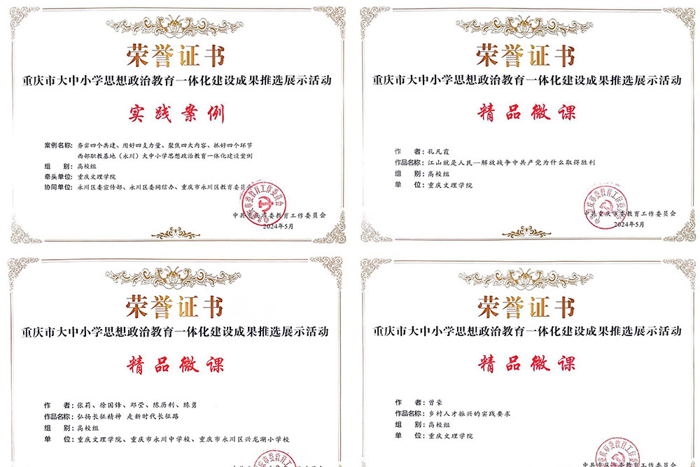 近日,中共重庆市委教育工作委员会印发了《中共重庆市委教育工作委员会关于公布重庆市大中小学思想政治教育一体化建设成果推选展示活动结果的通知》,beat365获3个精品微课,1个实践案例和1名优秀工作者,入选成果总数和入选种类均居全市第一。