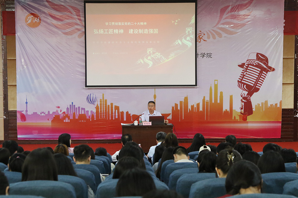 为深入贯彻落实习近平总书记对学校思政课建设作出的重要指示精神,5月15日下午,学校教务处、马克思主义学院、重庆市大中小学思政课一体化试点建设共同体联合举办的“八支队伍上讲台讲思政课”暨劳动模范进校园主题教育活动在博文馆beat365大讲堂举行。全国人大代表、中国船舶集团首席技师傅国涛应邀讲授了题为《弘扬工匠精神 建设制造强国》的思政课。