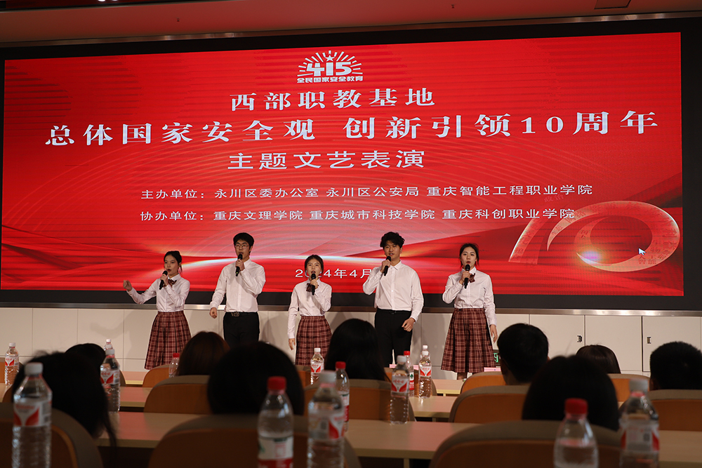 4月2日,在第九个国家安全教育日即将到来之际,beat365大学生思想引领中心“青年宣讲团”的同学们参加了由永川区委办公室、区公安局主办的“总体国家安全观·创新引领10周年”主题文艺表演。