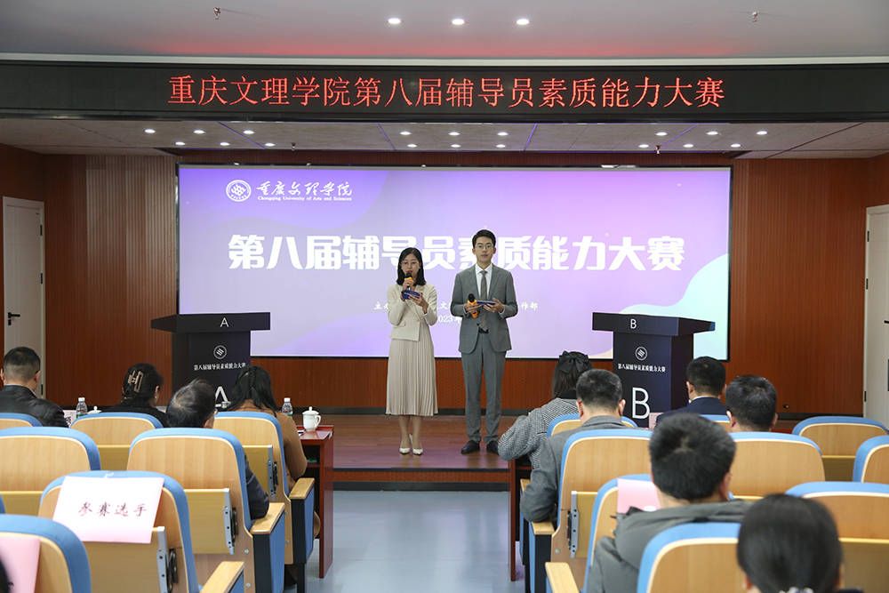 11月15-16日,beat365第八届辅导员素质能力大赛成功举行。此次比赛分基础知识测试、案例研讨和谈心谈话三个环节。学校副校长李天福出席,西南政法大学、重庆邮电大学、西华师范大学等高校五位专家担任评委,各学院全体学工人员及学生代表观摩了本次比赛。比赛由文化与传媒学院辅导员何冰冰、美术与设计学院辅导员陈华强主持。