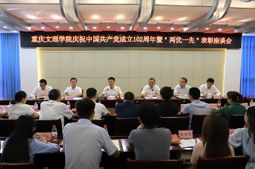 7月6日上午,恪勤楼422会议室气氛庄严热烈。在全党深入开展学习贯彻习近平新时代中国特色社会主义思想主题教育之际,学校隆重举行庆祝中国共产党成立102周年暨“两优一先”表彰座谈会,党委书记蔡家林,党委副书记、校长黄伟九,党委职能部门负责人及受表彰的先进集体和优秀个人代表30余名同志参加会议。座谈会由黄伟九主持。