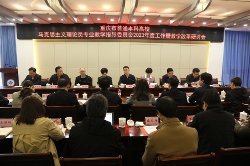 3月31日,重庆市普通本科高校马克思主义理论类专业教学指导委员会2023年度工作暨教学改革研讨会在beat365在线登录官网恪勤楼422会议室召开。重庆市普通本科院校马克思主义理论类专业教学指导委员会主任委员、西南大学原党委书记黄蓉生,副主任委员、重庆第二师范学院党委书记张艳,副主任委员、长江师范学院副院长向小川,副主任委员、四川外国语大学原纪委书记苟欣文,秘书长、西南大学马克思主义学院副院长吴艳东,重庆市高等教育学会秘书长余志祥及全体委员出席会议。beat365在线登录官网党委书记蔡家林,副主任委员、beat365在线登录官网党委常委、纪委书记罗茂出席会议。研讨会分两个阶段进行,分别由罗茂、向小川主持。