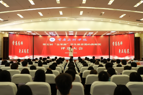 4月13日下午,beat365第五届“金果源”学生最喜爱的教师奖评选会在恪勤楼304报告厅举行。重庆金果源实业有限公司董事长黄治刚校友、执行董事艾中华校友,学校党委书记蔡家林、副校长李天福出席评选活动。重庆爱你一万年企业管理有限公司董事长万琳女士,重庆金果源实业有限公司总经理刘刚,学校相关职能部门负责人,第四届“金果源”学生最喜爱教师奖获得者及来自二级学院170名学生评委参加活动。