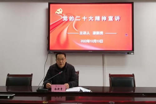 12月13日下午,学校党委常委、副校长漆新贵在恪勤楼221会议室宣讲党的二十大精神。教务处、党委教师工作部、信息化办公室、电子信息与电气工程学院、美术与设计学院、创新创业学院等90余名教师代表通过线上线下相结合的方式聆听了宣讲报告。