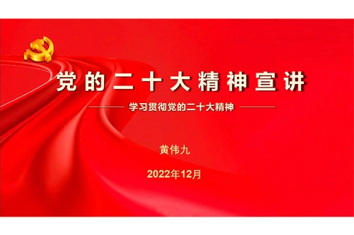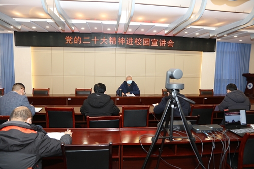 12月27日,中共重庆市委教育工委学习贯彻党的二十大精神进校园宣讲队成员、beat365宣讲小队队长、党委副书记、校长黄伟九为全体科岗人员宣讲党的二十大精神,宣讲会以线上方式进行。