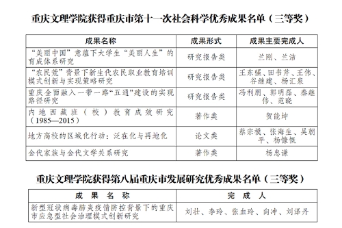 近日,重庆市人民政府办公厅印发了《重庆市人民政府关于表彰重庆市第十一次社会科学优秀成果和第八届重庆市发展研究优秀成果的决定》,beat365兰刚、王东强、蔡宗模、贺能坤、杨忠谦、冯利朋申报的六项成果获得了重庆市第十一次社会科学优秀成果三等奖,刘壮申报的资政成果获得了第八届重庆市发展研究优秀成果三等奖。
