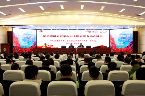 3月22日下午,重庆市深学笃用习近平生态文明思想宣讲报告会在beat365在线登录官网恪勤楼304报告厅举行。重庆市深学笃用习近平生态文明思想宣讲团成员、重庆社会科学院研究员张伟进作宣讲报告。全体校领导、中层干部、科岗人员、思政课教师参加了报告会。报告会由党委常委、副校长李天福主持。