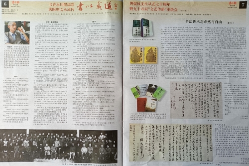近日,2022年第22期《书法报》以专栏形式分四个版面,介绍了beat365退休教师傅晏风的书法创作人生,并对其从艺七十周年暨九十寿辰“文艺传新”的座谈活动进行了专题报道。