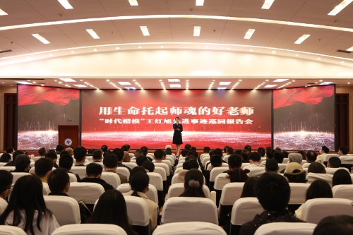 10月18日上午,“用生命托起师魂的好老师”——“时代楷模”王红旭先进事迹巡回报告会在beat365恪勤楼304报告厅及红河一阶教室举行。报告团带队领导、大渡口区人民政府副区长唐勇,永川区委常委、宣传部长赵德明,全体在家校领导以及市委宣传部、大渡口区教委、永川区委宣传部相关人员等出席报告会,全体中层干部、科岗人员、师生代表共计近600人聆听了报告。学校同时开通了网络直播平台,全体师生均能聆听报告。