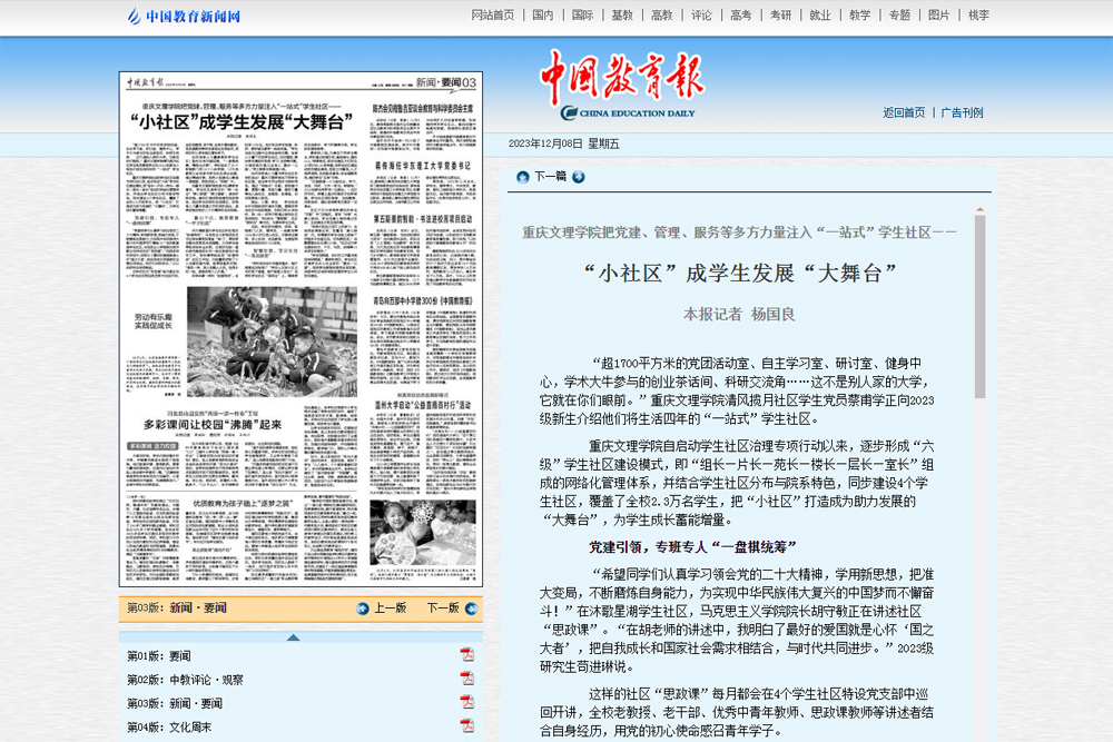党团活动室、自主学习室、健身中心、创业茶话间……在这个1700平方米的“一站式”学生社区里,“社区思政课”、品牌文化活动、集体运动会等活动有序开展。一时间,《“小社区”撬动“大思政”beat365在线登录官网深化“一站式”学生社区建设》《beat365在线登录官网把党建、管理、服务等多方力量注入“一站式”学生社区——“小社区”成为学生发展“大舞台”》等相关新闻报道在人民网、中国教育报等媒体平台上线,引发大众关注、点赞。“一站式”学生社区,也成为了beat365在线登录官网持续推进宣传思想文化工作的一张名片、一个窗口。