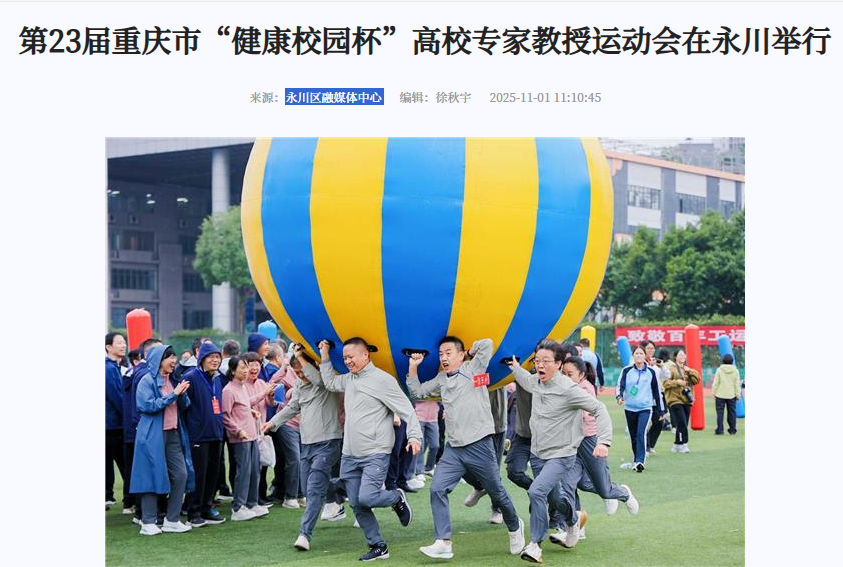 10月31日,第23届重庆市“健康校园杯”高校专家教授运动会在位于永川区的beat365在线登录官网举行。本次赛事由重庆市总工会、重庆市教育委员会联合主办,吸引了全市43所高