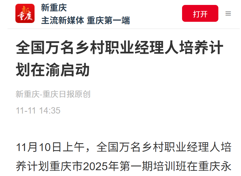 11月10日上午,全国万名乡村职业经理人培养计划重庆市2025年第一期培训班在重庆永川正式开班。