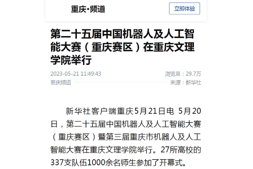 今日头条:第二十五届中国机器人及人工智能大赛暨重庆赛区启动