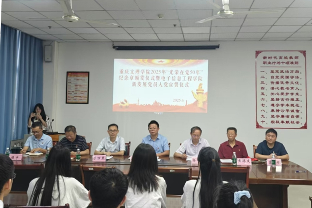 6月27日上午,在中国共产党成立104周年之际,学校在格术楼C301会议室举行“光荣在党50年”纪念章颁发仪式暨电子信息工程学院党委新发展党员入党宣誓仪式。党委