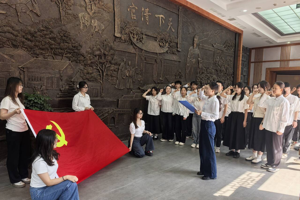 6月11日下午,文化传播与设计学院新发展党员入党宣誓仪式在重庆江津聂荣臻元帅陈列馆举行。学生第二支部书记余建荣、学生第三支部书记陈华强、学生第四支部书记张静、学