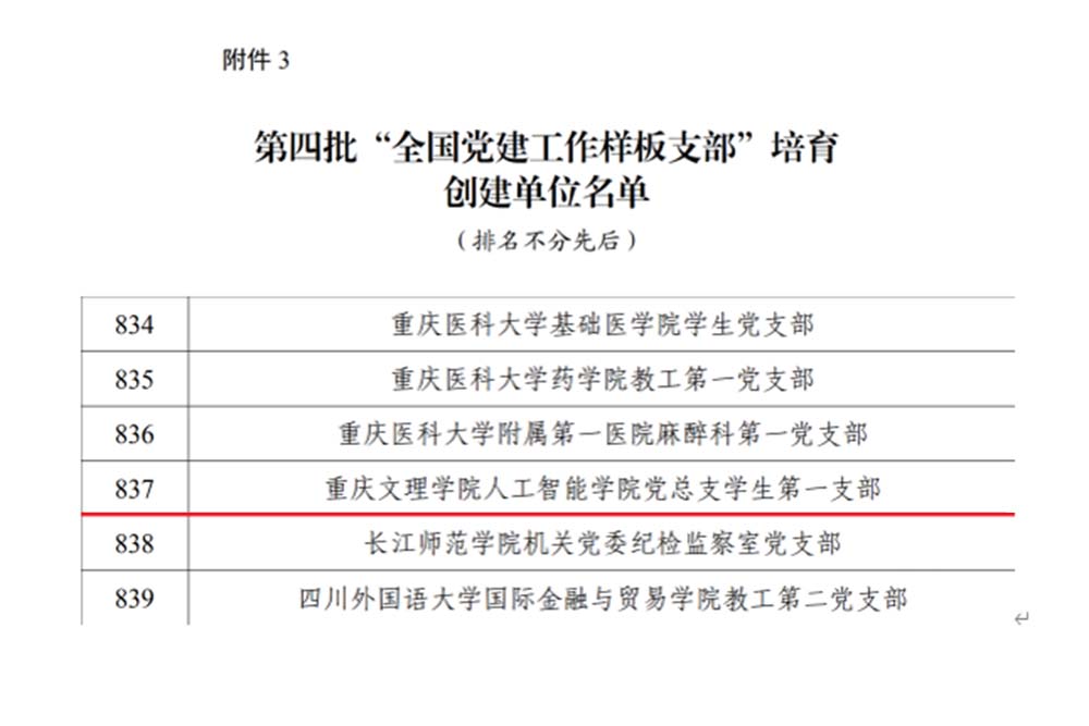 近日,教育部办公厅公布第四批全国党建工作示范高校、标杆院系、样板支部培育创建单位名单,beat365数学与人工智能学院学生第一党支部(原人工智能学院党总支学生第一支部)入选全国党建工作样板支部培育创建单位。