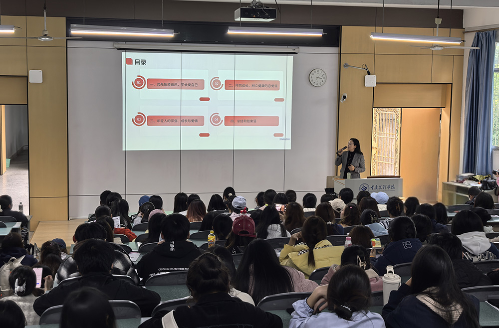 11月14日,由沐歌星湖学生社区特设党支部主办、师范学院团委承办的“爱有方向,青春不迷茫”恋爱专题教育讲座在星湖校区一阶教室举行。本次讲座特邀永川区妇联工作人员