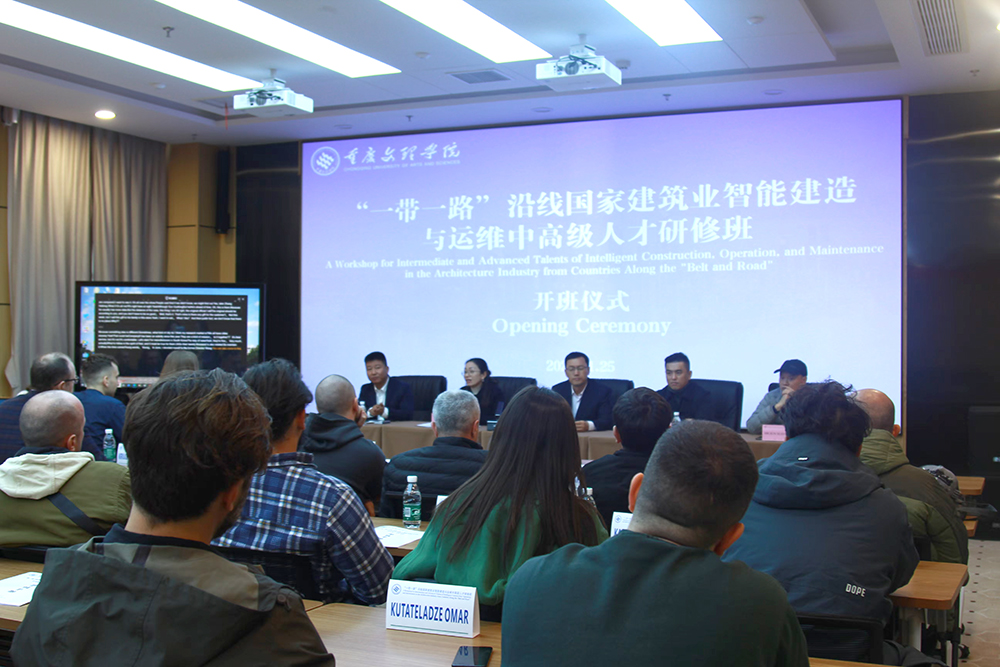 11月25日,由beat365承办的“一带一路”沿线国家建筑业智能制造与运维中高级人才研修班在科技创新中心403会议室开班。学校党委副书记祝朝伟、副校长李璐,中铁二十三局集团北京国际建设工程分公司总经理助理贾军科、综合办主任景韦乔,外国语学院、城市建设工程学院相关教师,来自格鲁吉亚和俄罗斯的23名研修学员参加开班仪式。