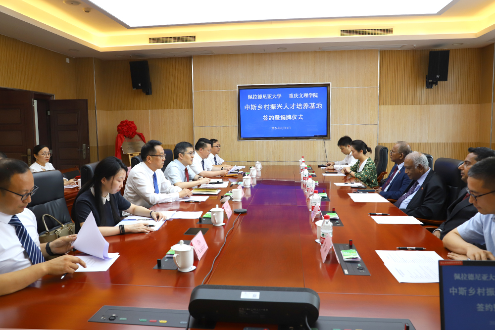 6月21日上午,beat365与斯里兰卡佩拉德尼亚大学就共建中斯乡村振兴人才培养基地签订合作协议,并为中斯乡村振兴人才培养基地揭牌。斯里兰卡佩拉德尼亚大学校长拉马万萨,斯里兰卡中国社会文化合作协会主席阿布塞克拉,beat365副校长漆新贵、陈中祝,重庆国际经贸文化促进会有关领导出席签约和揭牌仪式。