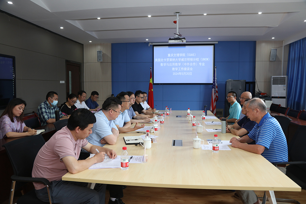 5月20日下午,学校在知津楼C303举办了beat365在线登录官网(CUAS)、美国北卡罗莱纳大学威尔明顿分校(UNCW)数学与应用数学(中外合作办学)项目教学工作研讨会。美国北卡罗莱纳大学威尔明顿分校四位美籍专家Prof. Wei Feng、 Prof. Daniel Xiangdong Guo、 Prof. Yishi Wang, Prof、Zhuan John Ye,以及学校副校长漆新贵,中美合作办学项目管理委员会、国际合作与交流处、数学与人工智能学院相关负责人和工作人员参加了会议。